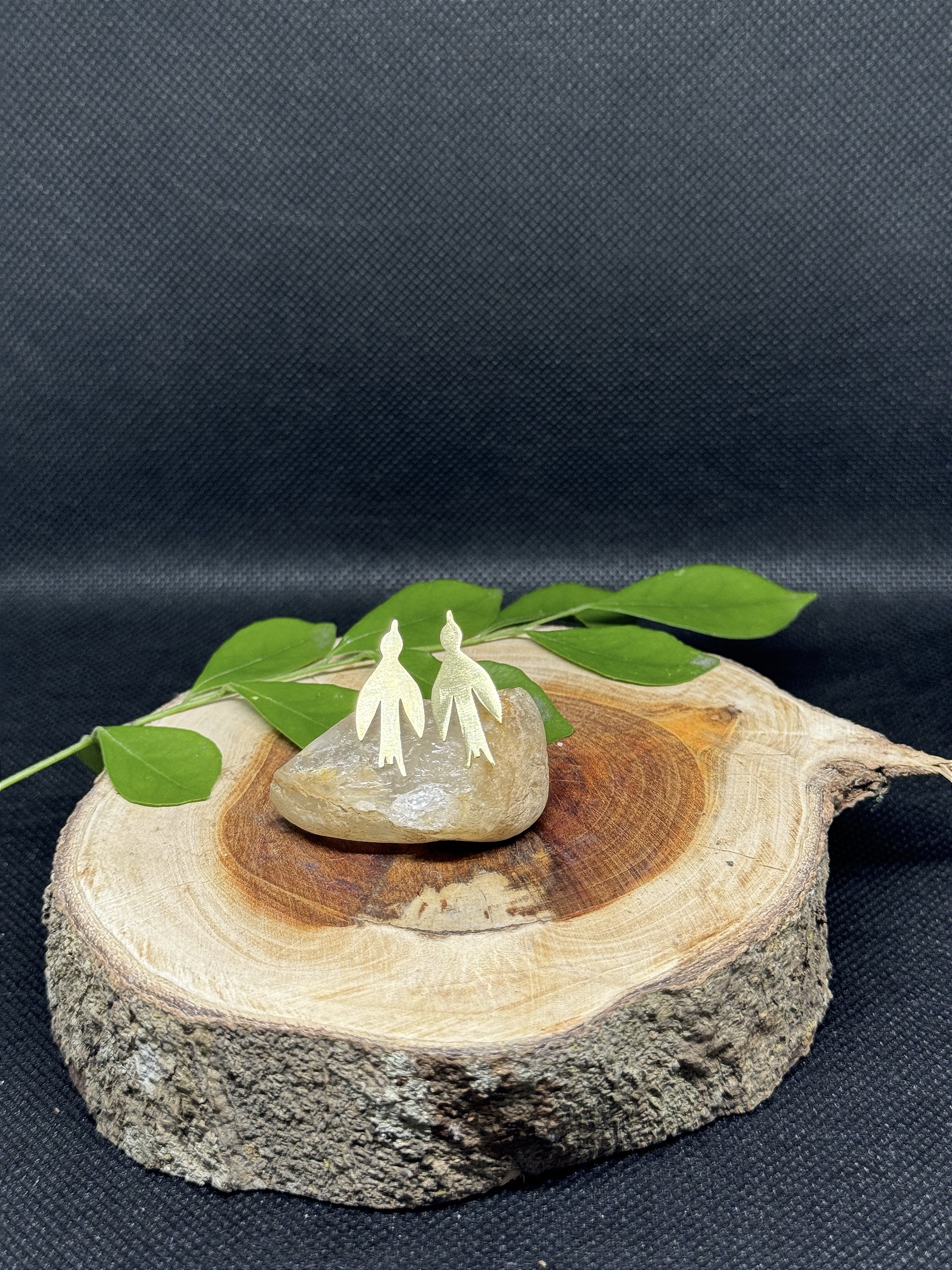 Brincos delicados de pardáis em metal susntetável remodelado.