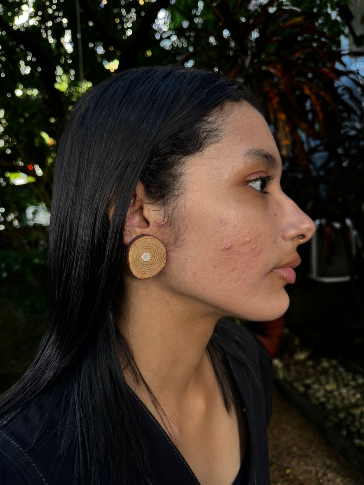 Brinco em formato de tronco de árvore com pino de metal