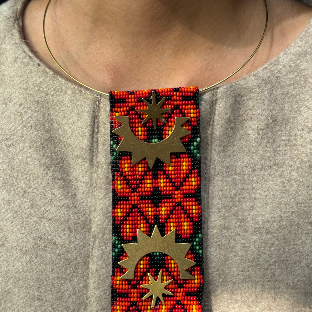 Colar choker artesanal feito com miçangas indígenas com aro em latão
